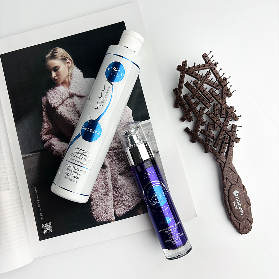 Флюїд-блиск REAL BLOND - це антивіковий косметичний засіб з насінням льону, розроблений для нейтралізації небажаних жовтих відтінків на білому, попелястому та освітленому волоссі.