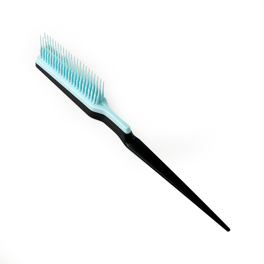 Гребінець-страйпер для фарбування і мелірування волосся блакитного кольору. Підходить для дрібного мелірування на тонких пасмах будь-якої довжини. Він дбайливо розчісує сухе і мокре волосся, точно виділяє пасма для мелірування. Має зубчики різної довжини 30 мм і 12 мм та загострений хвостик на ручці, що розділяє пасма. Виходить дуже дрібне мелірування без швів та ефекту смужок. Щіткою легко можна виконати плавні переходи, розтяжку кольору та фарбування іншої техніки. Гребінець підходить як для домашнього використання, так і для професійного. Виготовлений з міцного гіпоалергенного пластику.
