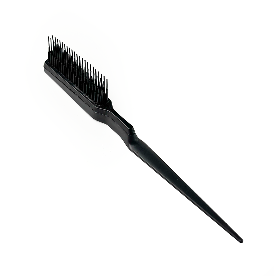 Гребінець-страйпер для фарбування і мелірування волосся чорного кольору. Підходить для дрібного мелірування на тонких пасмах будь-якої довжини. Він дбайливо розчісує сухе і мокре волосся, точно виділяє пасма для мелірування. Має зубчики різної довжини 30 мм і 12 мм та загострений хвостик на ручці, що розділяє пасма. Виходить дуже дрібне мелірування без швів та ефекту смужок. Щіткою легко можна виконати плавні переходи, розтяжку кольору та фарбування іншої техніки. Гребінець підходить як для домашнього використання, так і для професійного. Виготовлений з міцного гіпоалергенного пластику.