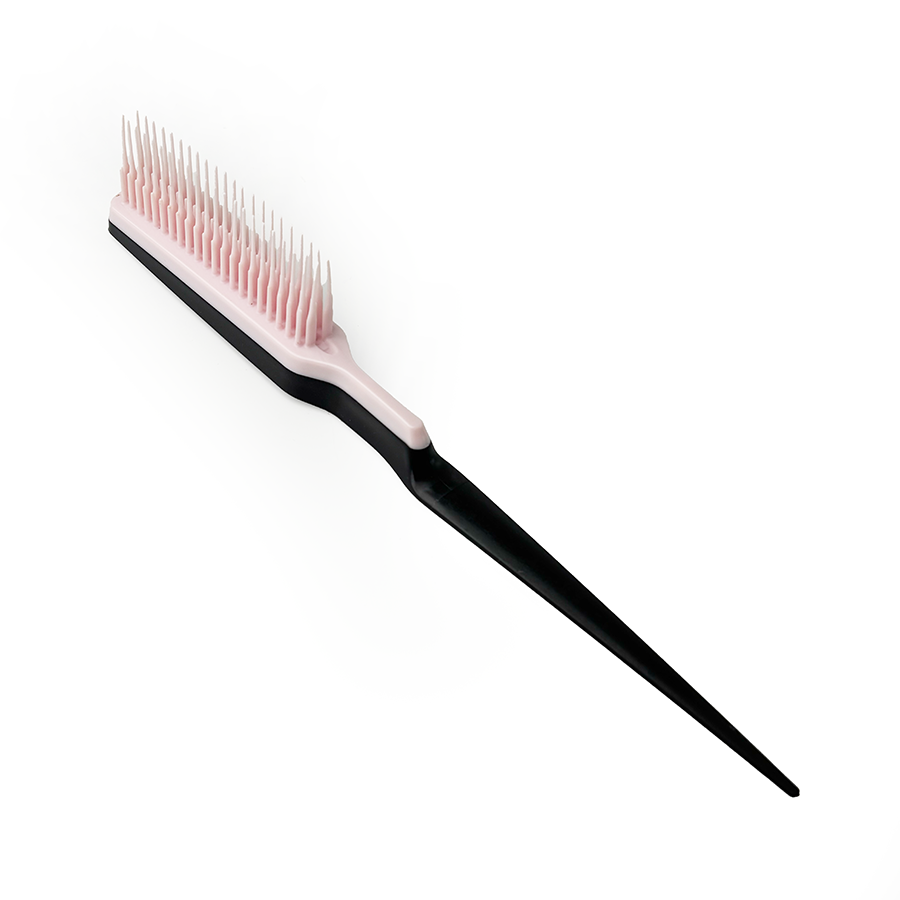 Гребінець-страйпер для фарбування і мелірування волосся рожевого кольору. Підходить для дрібного мелірування на тонких пасмах будь-якої довжини. Він дбайливо розчісує сухе і мокре волосся, точно виділяє пасма для мелірування. Має зубчики різної довжини 30 мм і 12 мм та загострений хвостик на ручці, що розділяє пасма. Виходить дуже дрібне мелірування без швів та ефекту смужок. Щіткою легко можна виконати плавні переходи, розтяжку кольору та фарбування іншої техніки. Гребінець підходить як для домашнього використання, так і для професійного. Виготовлений з міцного гіпоалергенного пластику.