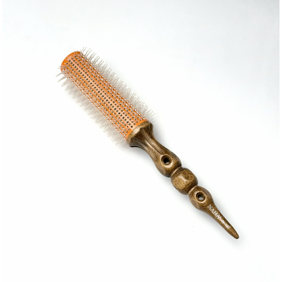 - Матеріал брашинга: корпус брашинга виготовлений з дерева, покритого карбоном - міцним матеріалом, що має антистатичний ефект. Робоче полотно брашинга зроблене з алюмінію, що дозволяє йому швидко нагріватися потоком повітря з фена і зберігати температуру без втрат, а зверху нанесено керамічне турмалінове покриття, що створює іонізуючий ефект.