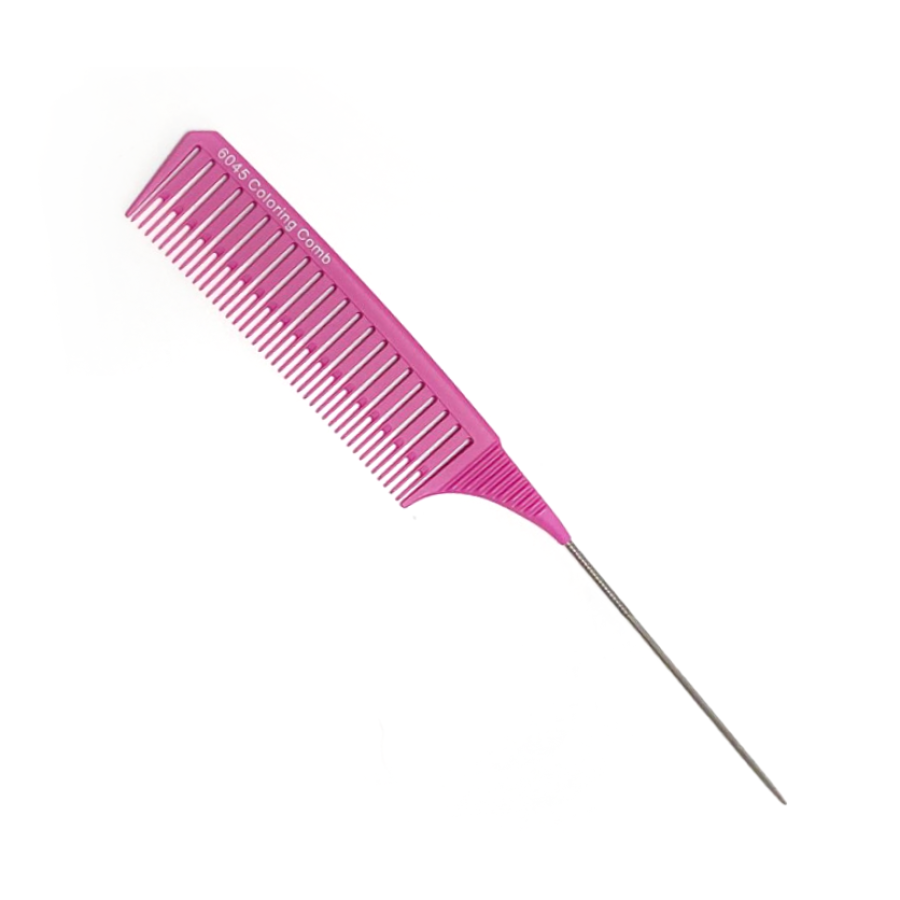 Расческа для мелирования, с помощью которой можно быстро и легко разделить волосы на небольшие пряди. Одним простым движением позволяет набрать несколько абсолютно ровных прядей, готовых к покраске. Оснащен спицей-хвостиком из нержавеющей стали. Важным преимуществом расчески является отсутствие статики во время работы и как следствие предотвращения frizz-эффекта.