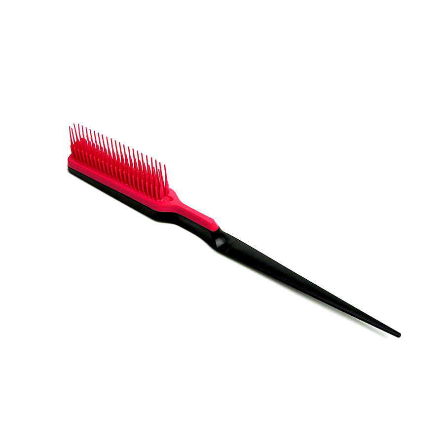 Расческа-страйпер для окрашивания и мелирования волос красного цвета. Подходит для мелкого мелирования на тонких прядях любой длины. Она бережно расчесывает сухие и мокрые волосы, точно выделяет прядь для мелирования. Имеет зубчики разной длины 30 мм и 12 мм и заостренный хвостик в ручке, разделяющей прядь. Выходит очень мелкое мелирование без швов и эффекта полосок. Щеткой легко можно выполнить плавные переходы, растяжку цвета и покраску другой техники. Расческа подходит как для домашнего использования, так и для профессионального. Изготовлена из прочного гипоаллергенного пластика.